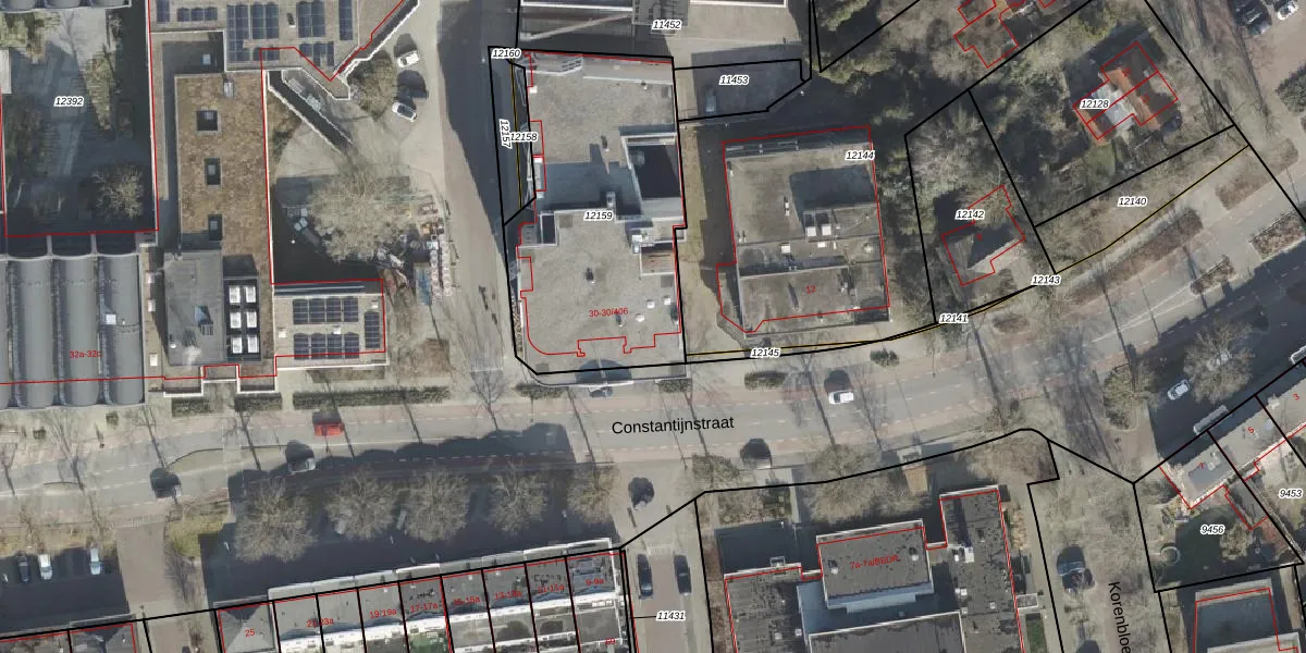 Het perceel waarop Constantijnstraat 30-02 staat heeft een oppervlakte van 1177 m². Dit is een zeer groot perceel. De perceeloppervlakte wordt geregistreerd door het Kadaster. Gedetailleerde informatie over de maten van dit perceel kunt u vinden in het rapport Kadastrale kaart met maatvoering van Constantijnstraat 30-02.