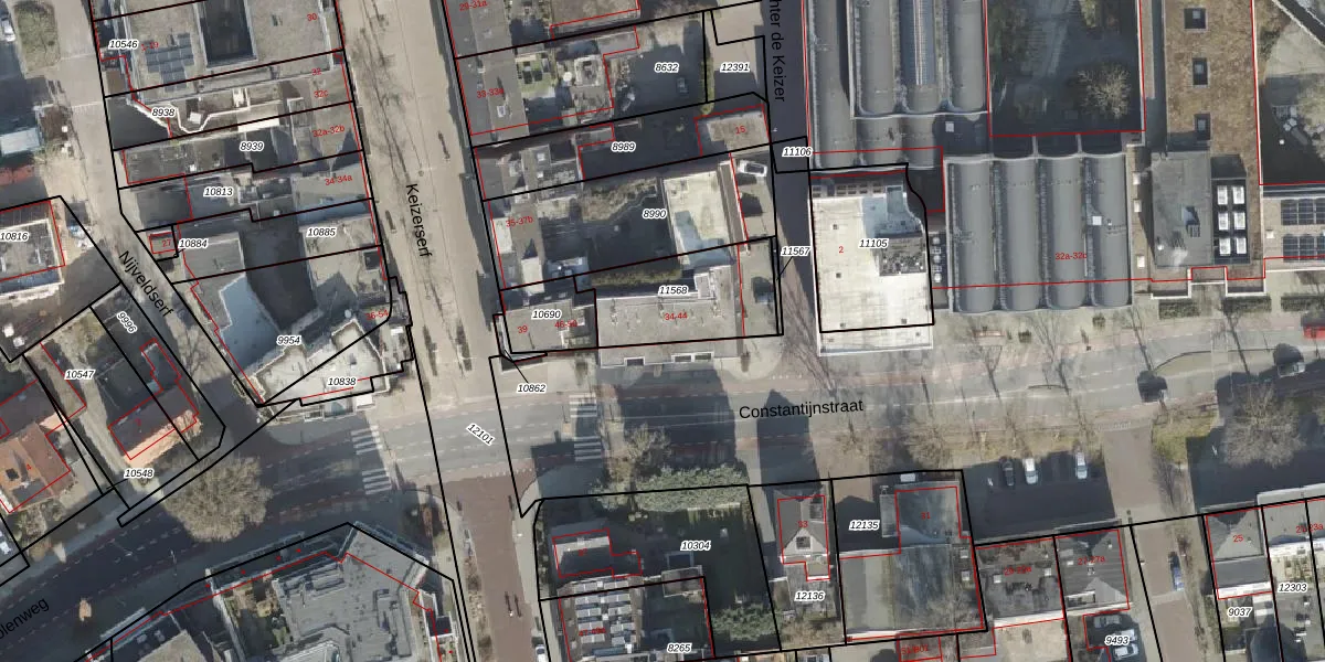 Het perceel waarop Constantijnstraat 40 staat heeft een oppervlakte van 360 m². Dit is een groot perceel. De perceeloppervlakte wordt geregistreerd door het Kadaster. Gedetailleerde informatie over de maten van dit perceel kunt u vinden in het rapport Kadastrale kaart met maatvoering van Constantijnstraat 40.