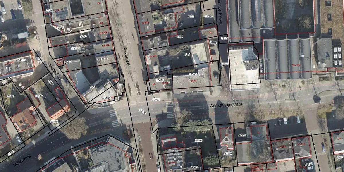 Het perceel waarop Constantijnstraat 46 staat heeft een oppervlakte van 140 m². Dit is een middelgroot perceel. De perceeloppervlakte wordt geregistreerd door het Kadaster. Gedetailleerde informatie over de maten van dit perceel kunt u vinden in het rapport Kadastrale kaart met maatvoering van Constantijnstraat 46.