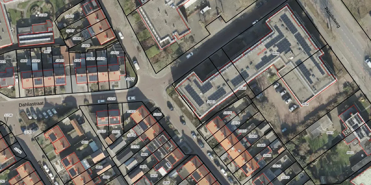 Het perceel waarop Dahliastraat 2-11 staat heeft een oppervlakte van 660 m². Dit is een groot perceel. De perceeloppervlakte wordt geregistreerd door het Kadaster. Gedetailleerde informatie over de maten van dit perceel kunt u vinden in het rapport Kadastrale kaart met maatvoering van Dahliastraat 2-11.