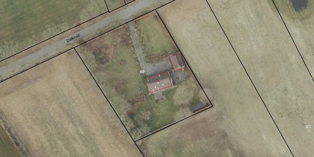 Het perceel waarop Dalkruid 14 staat heeft een oppervlakte van 3960 m². Dit is een zeer groot perceel. De perceeloppervlakte wordt geregistreerd door het Kadaster. Gedetailleerde informatie over de maten van dit perceel kunt u vinden in het rapport Kadastrale kaart met maatvoering van Dalkruid 14.