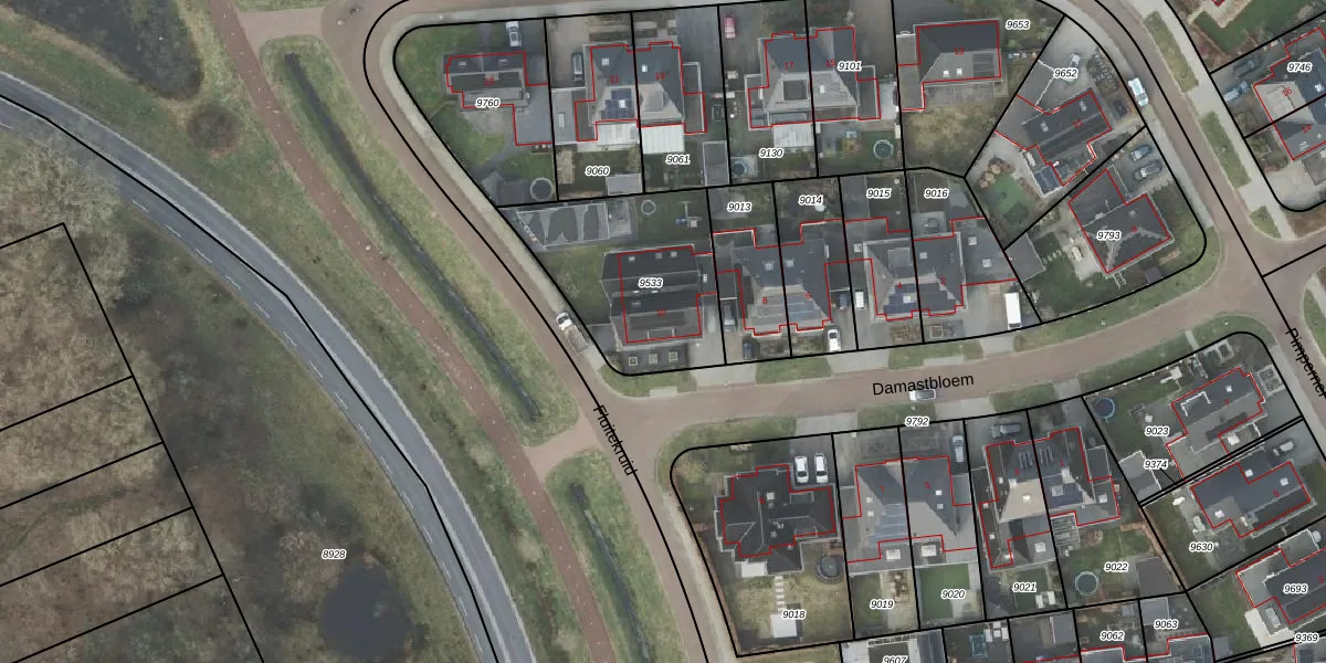 Het perceel waarop Damastbloem 10 staat heeft een oppervlakte van 642 m². Dit is een groot perceel. De perceeloppervlakte wordt geregistreerd door het Kadaster. Gedetailleerde informatie over de maten van dit perceel kunt u vinden in het rapport Kadastrale kaart met maatvoering van Damastbloem 10.