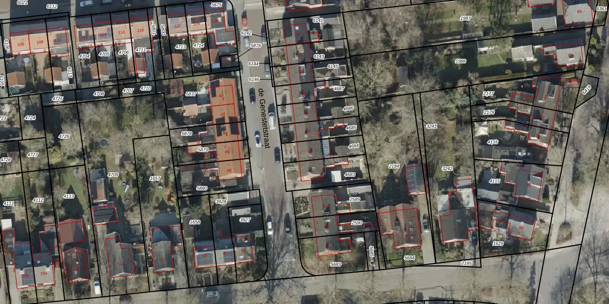 Het perceel waarop de Genestetstraat 35 staat heeft een oppervlakte van 172 m². Dit is een middelgroot perceel. De perceeloppervlakte wordt geregistreerd door het Kadaster. Gedetailleerde informatie over de maten van dit perceel kunt u vinden in het rapport Kadastrale kaart met maatvoering van de Genestetstraat 35.