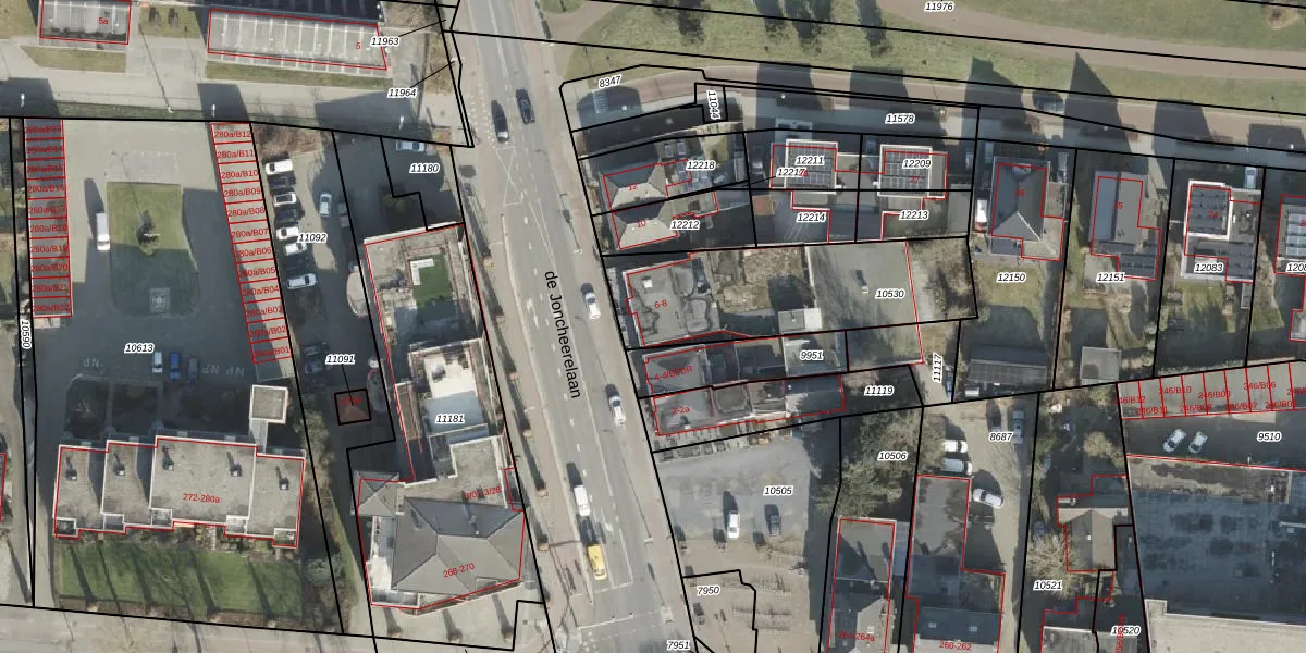 Het perceel waarop de Joncheerelaan 6 staat heeft een oppervlakte van 727 m². Dit is een groot perceel. De perceeloppervlakte wordt geregistreerd door het Kadaster. Gedetailleerde informatie over de maten van dit perceel kunt u vinden in het rapport Kadastrale kaart met maatvoering van de Joncheerelaan 6.