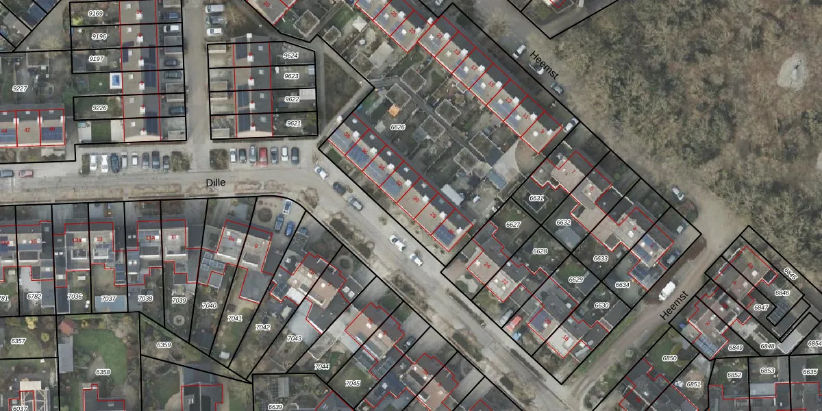 Het perceel waarop Dille 30 staat heeft een oppervlakte van 3076 m². Dit is een zeer groot perceel. De perceeloppervlakte wordt geregistreerd door het Kadaster. Gedetailleerde informatie over de maten van dit perceel kunt u vinden in het rapport Kadastrale kaart met maatvoering van Dille 30.