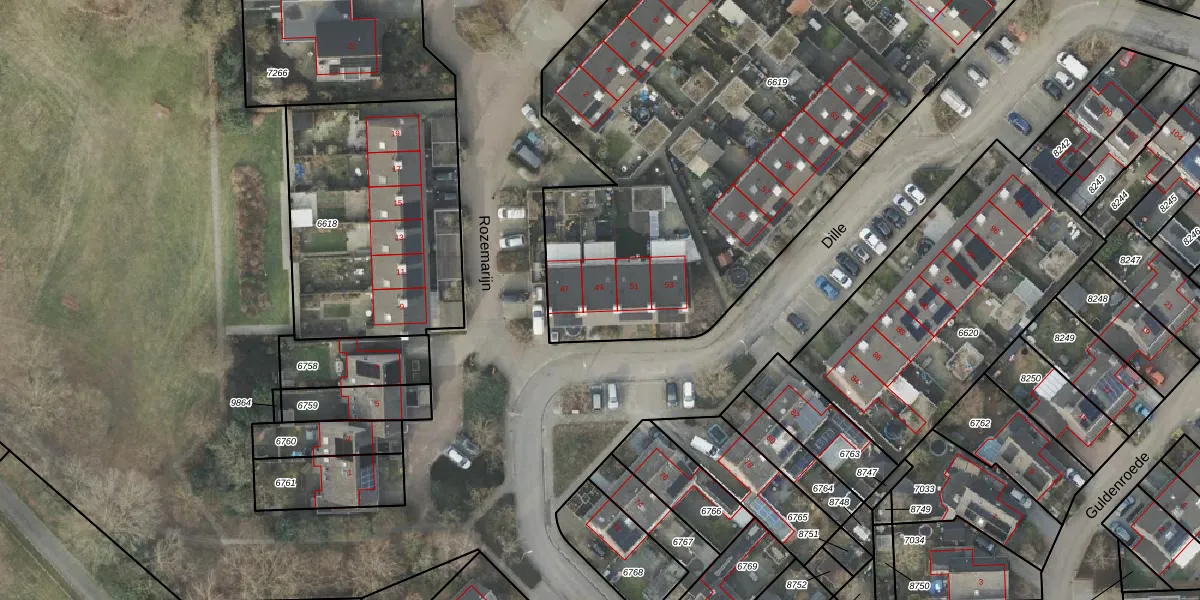 Het perceel waarop Dille 49 staat heeft een oppervlakte van 3950 m². Dit is een zeer groot perceel. De perceeloppervlakte wordt geregistreerd door het Kadaster. Gedetailleerde informatie over de maten van dit perceel kunt u vinden in het rapport Kadastrale kaart met maatvoering van Dille 49.