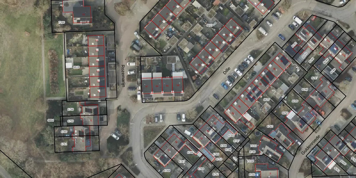Het perceel waarop Dille 53 staat heeft een oppervlakte van 3950 m². Dit is een zeer groot perceel. De perceeloppervlakte wordt geregistreerd door het Kadaster. Gedetailleerde informatie over de maten van dit perceel kunt u vinden in het rapport Kadastrale kaart met maatvoering van Dille 53.