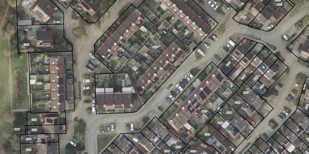 Het perceel waarop Dille 57 staat heeft een oppervlakte van 3950 m². Dit is een zeer groot perceel. De perceeloppervlakte wordt geregistreerd door het Kadaster. Gedetailleerde informatie over de maten van dit perceel kunt u vinden in het rapport Kadastrale kaart met maatvoering van Dille 57.