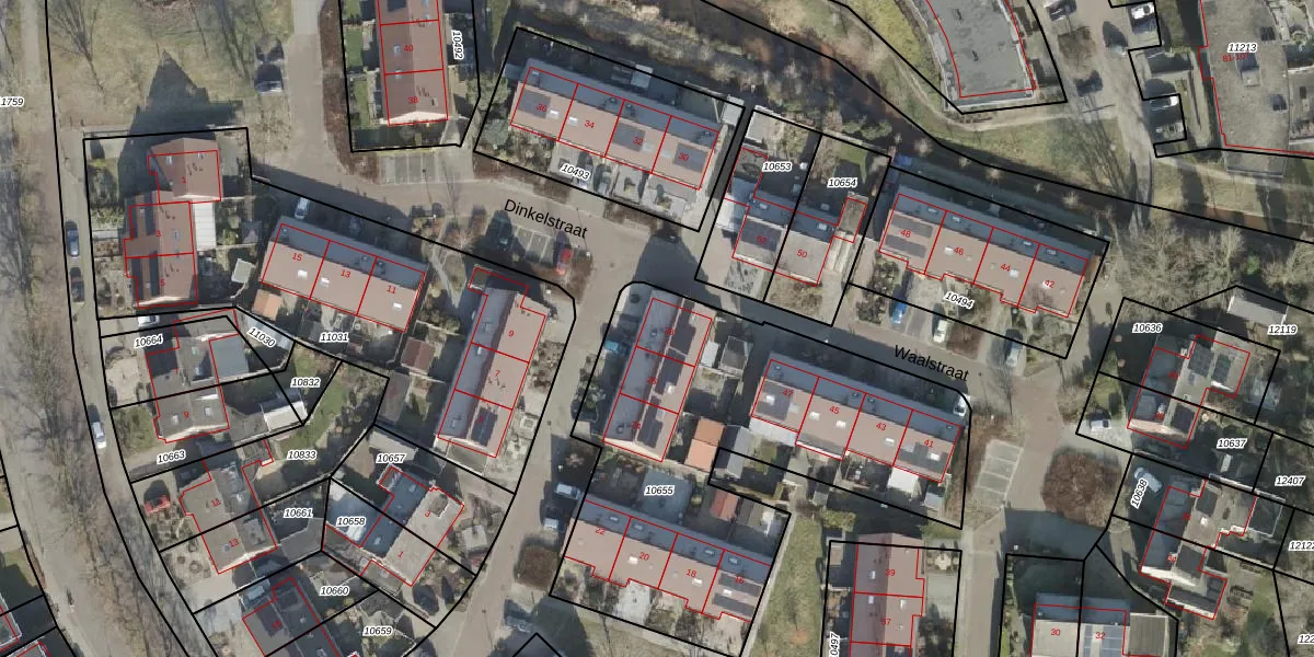 Het perceel waarop Dinkelstraat 28 staat heeft een oppervlakte van 2021 m². Dit is een zeer groot perceel. De perceeloppervlakte wordt geregistreerd door het Kadaster. Gedetailleerde informatie over de maten van dit perceel kunt u vinden in het rapport Kadastrale kaart met maatvoering van Dinkelstraat 28.