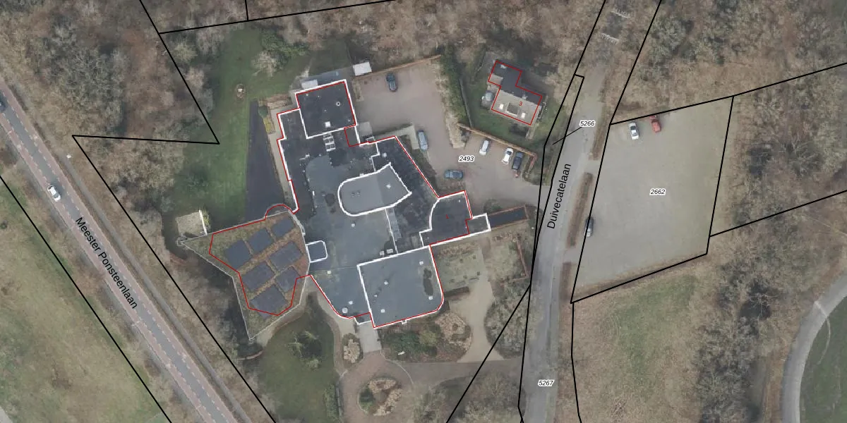 Het perceel waarop Duivecatelaan 1 staat heeft een oppervlakte van 9080 m². Dit is een zeer groot perceel. De perceeloppervlakte wordt geregistreerd door het Kadaster. Gedetailleerde informatie over de maten van dit perceel kunt u vinden in het rapport Kadastrale kaart met maatvoering van Duivecatelaan 1.