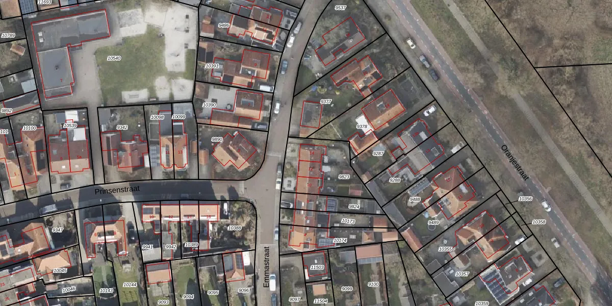 Het perceel waarop Emmastraat 14 staat heeft een oppervlakte van 430 m². Dit is een groot perceel. De perceeloppervlakte wordt geregistreerd door het Kadaster. Gedetailleerde informatie over de maten van dit perceel kunt u vinden in het rapport Kadastrale kaart met maatvoering van Emmastraat 14.