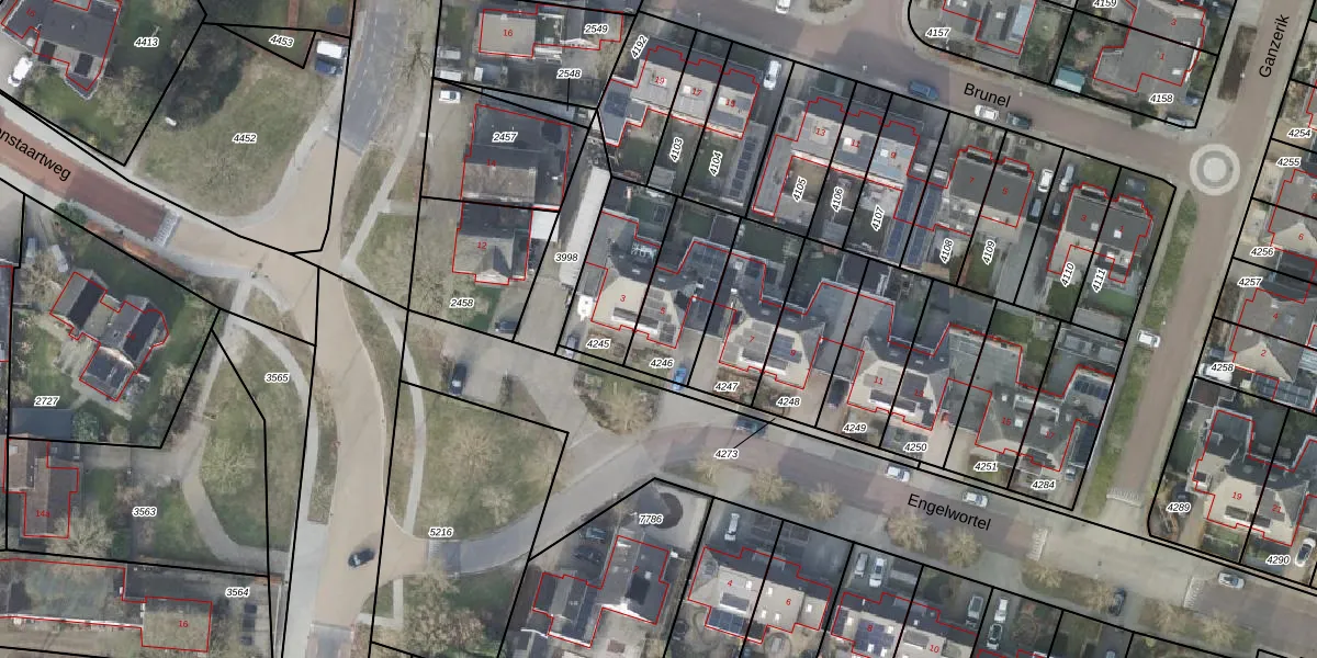 Engelwortel 5 is gelegen op kadastraal perceel HLD01B4246. Deze kadastrale aanduiding is uniek en wordt gebruikt door het Kadaster om eigendomsrechten en andere zakelijke rechten vast te leggen. Het perceel maakt onderdeel uit van de kadastrale gemeente Hellendoorn.