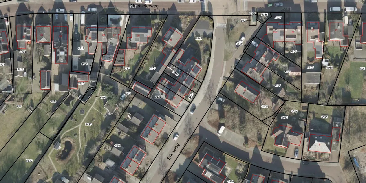 Ericaweg 34 is gelegen op kadastraal perceel HLD01L2443. Deze kadastrale aanduiding is uniek en wordt gebruikt door het Kadaster om eigendomsrechten en andere zakelijke rechten vast te leggen. Het perceel maakt onderdeel uit van de kadastrale gemeente Hellendoorn.