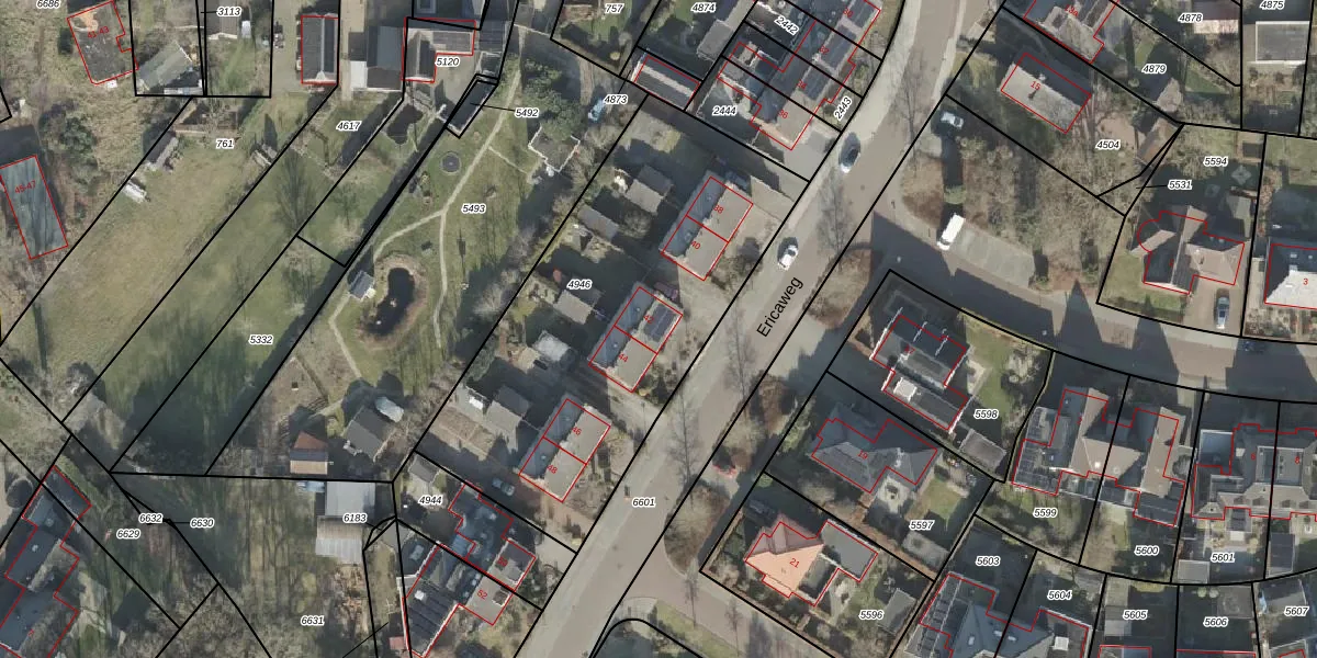 Het perceel waarop Ericaweg 42 staat heeft een oppervlakte van 1880 m². Dit is een zeer groot perceel. De perceeloppervlakte wordt geregistreerd door het Kadaster. Gedetailleerde informatie over de maten van dit perceel kunt u vinden in het rapport Kadastrale kaart met maatvoering van Ericaweg 42.