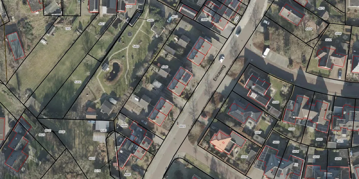 Ericaweg 44 is gelegen op kadastraal perceel HLD01L4946. Deze kadastrale aanduiding is uniek en wordt gebruikt door het Kadaster om eigendomsrechten en andere zakelijke rechten vast te leggen. Het perceel maakt onderdeel uit van de kadastrale gemeente Hellendoorn.