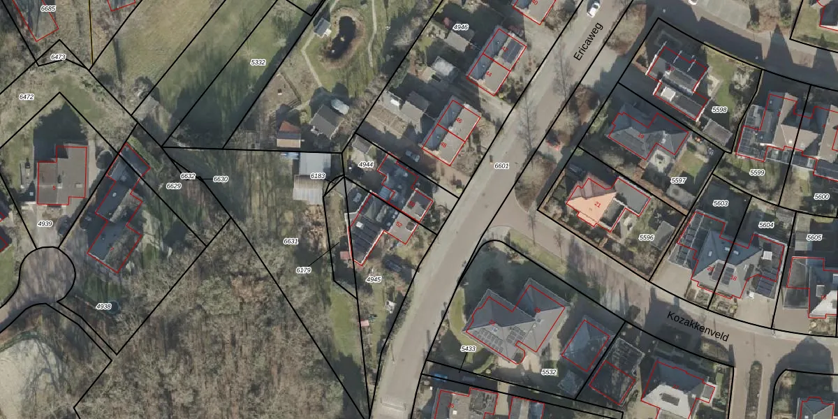 Ericaweg 50 is gelegen op kadastraal perceel HLD01L4944. Deze kadastrale aanduiding is uniek en wordt gebruikt door het Kadaster om eigendomsrechten en andere zakelijke rechten vast te leggen. Het perceel maakt onderdeel uit van de kadastrale gemeente Hellendoorn.