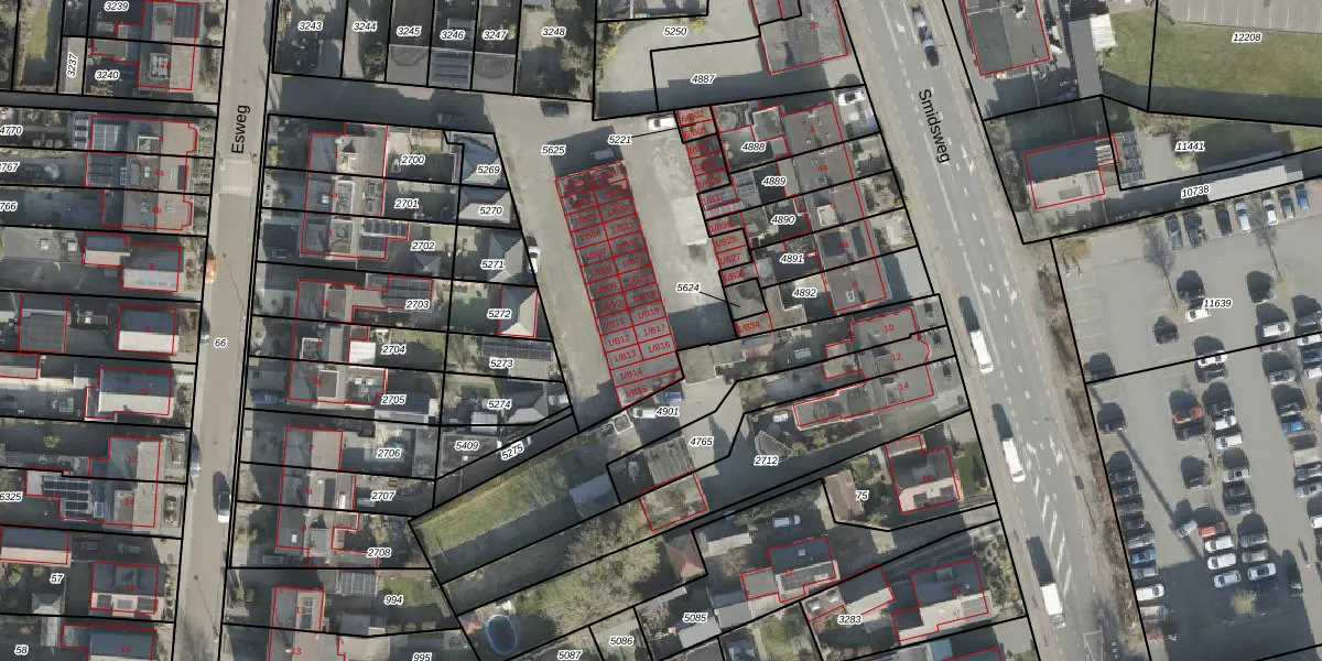 Het perceel waarop Esweg 1-B17 staat heeft een oppervlakte van 1516 m². Dit is een zeer groot perceel. De perceeloppervlakte wordt geregistreerd door het Kadaster. Gedetailleerde informatie over de maten van dit perceel kunt u vinden in het rapport Kadastrale kaart met maatvoering van Esweg 1-B17.