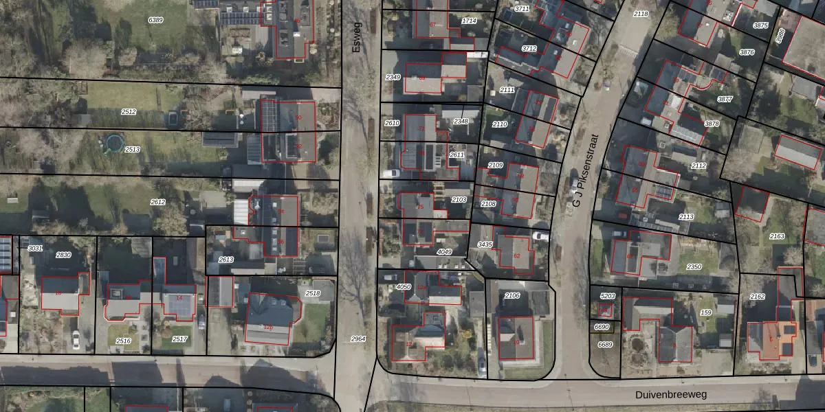 Gebruik de zoekbalk of klik op een perceel voor informatie over de adressen binnen dit perceel.