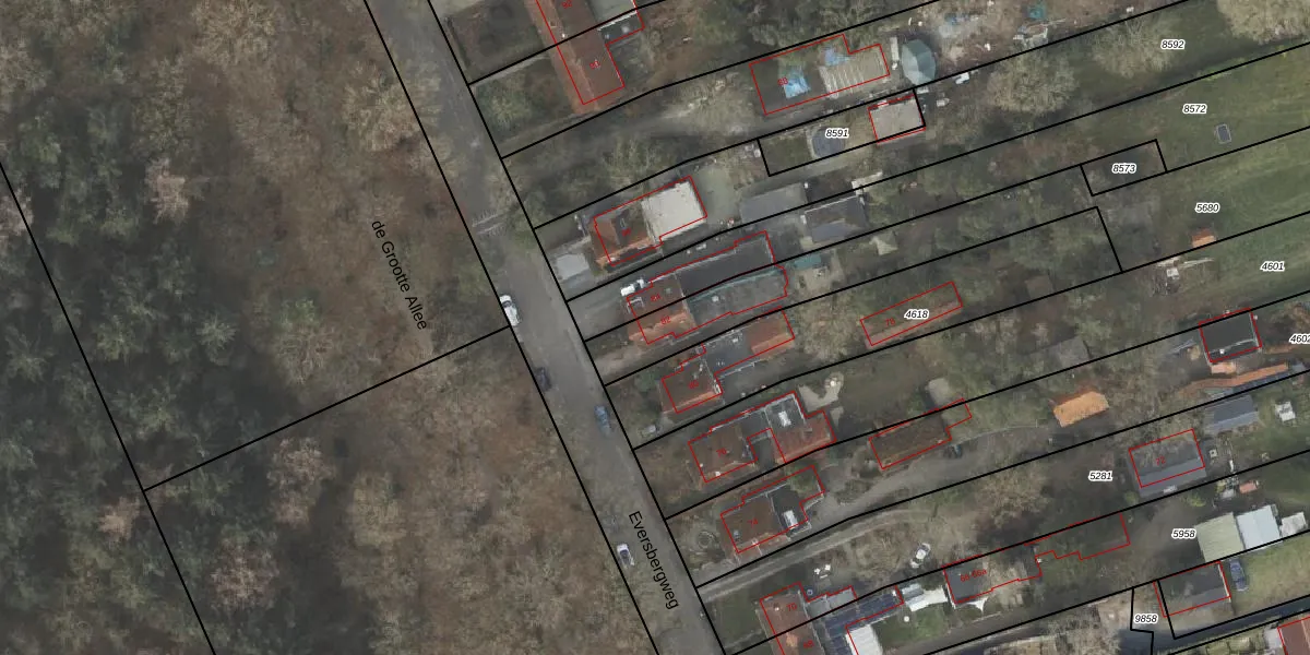 Het perceel waarop Eversbergweg 82 staat heeft een oppervlakte van 1815 m². Dit is een zeer groot perceel. De perceeloppervlakte wordt geregistreerd door het Kadaster. Gedetailleerde informatie over de maten van dit perceel kunt u vinden in het rapport Kadastrale kaart met maatvoering van Eversbergweg 82.