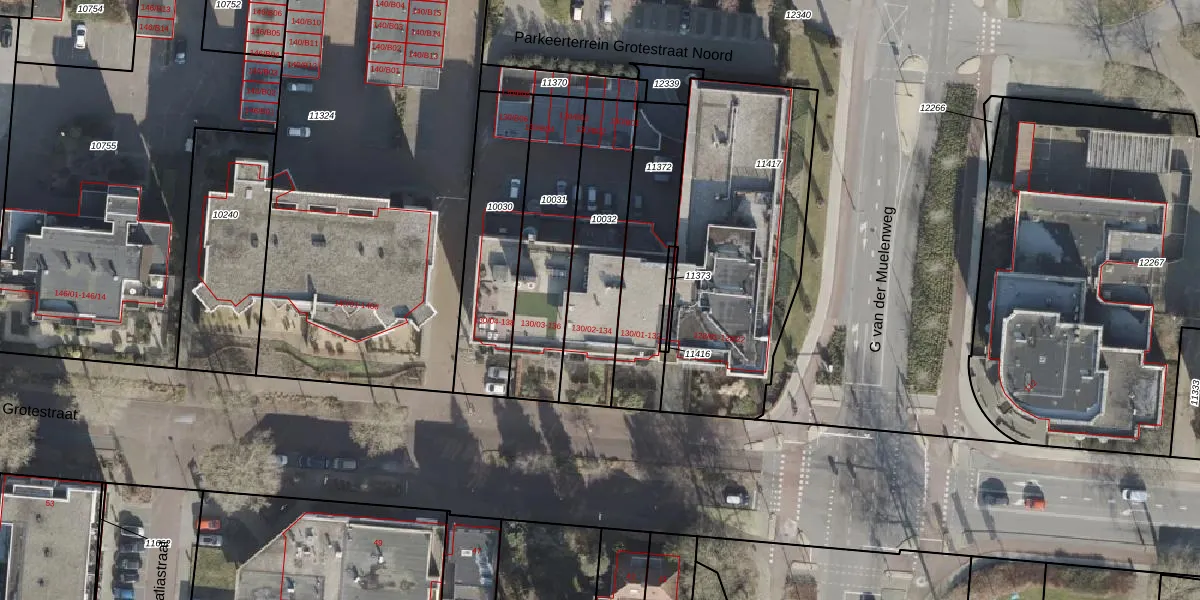 Het perceel waarop Grotestraat 130-06 staat heeft een oppervlakte van 437 m². Dit is een groot perceel. De perceeloppervlakte wordt geregistreerd door het Kadaster. Gedetailleerde informatie over de maten van dit perceel kunt u vinden in het rapport Kadastrale kaart met maatvoering van Grotestraat 130-06.