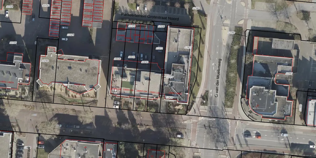 Het perceel waarop Grotestraat 130-09 staat heeft een oppervlakte van 420 m². Dit is een groot perceel. De perceeloppervlakte wordt geregistreerd door het Kadaster. Gedetailleerde informatie over de maten van dit perceel kunt u vinden in het rapport Kadastrale kaart met maatvoering van Grotestraat 130-09.