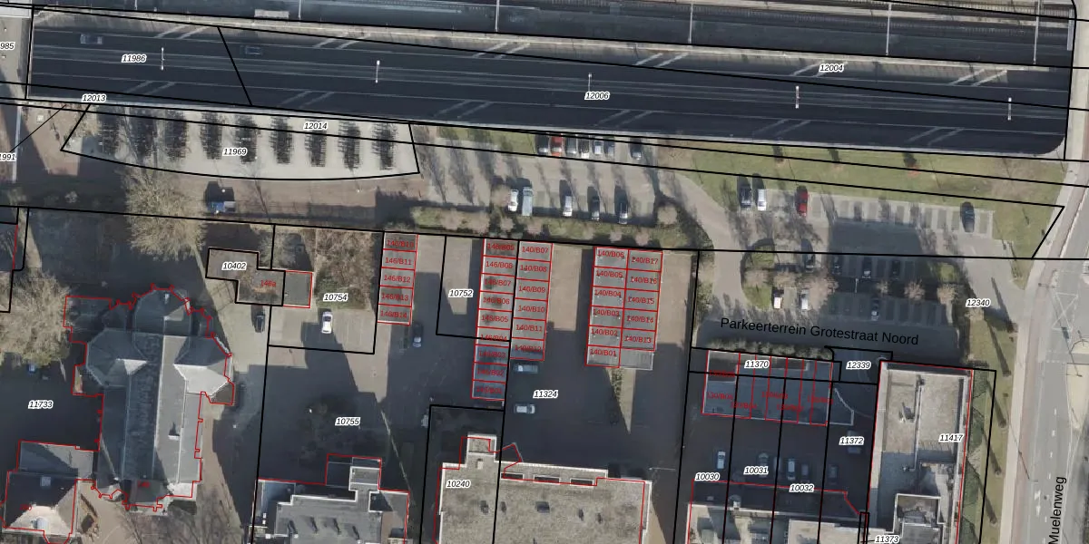 Het perceel waarop Grotestraat 140-B08 staat heeft een oppervlakte van 2400 m². Dit is een zeer groot perceel. De perceeloppervlakte wordt geregistreerd door het Kadaster. Gedetailleerde informatie over de maten van dit perceel kunt u vinden in het rapport Kadastrale kaart met maatvoering van Grotestraat 140-B08.