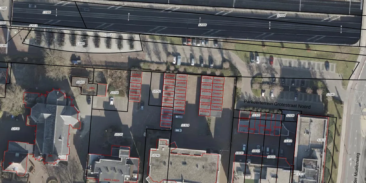 Het perceel waarop Grotestraat 140-B09 staat heeft een oppervlakte van 2400 m². Dit is een zeer groot perceel. De perceeloppervlakte wordt geregistreerd door het Kadaster. Gedetailleerde informatie over de maten van dit perceel kunt u vinden in het rapport Kadastrale kaart met maatvoering van Grotestraat 140-B09.