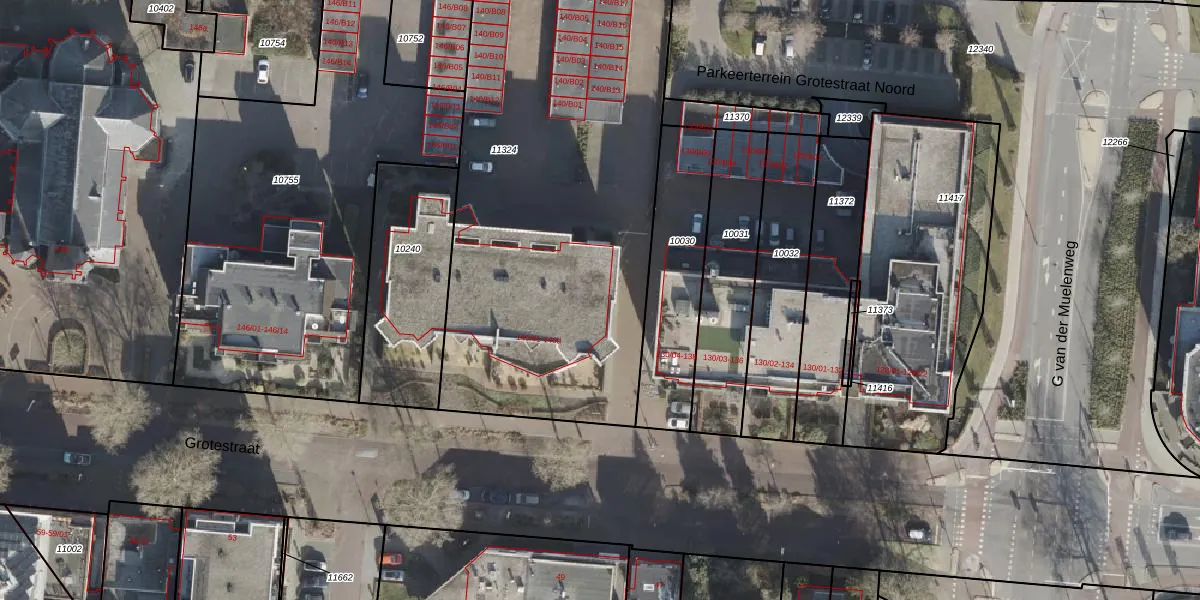 Het perceel waarop Grotestraat 140-09 staat heeft een oppervlakte van 2400 m². Dit is een zeer groot perceel. De perceeloppervlakte wordt geregistreerd door het Kadaster. Gedetailleerde informatie over de maten van dit perceel kunt u vinden in het rapport Kadastrale kaart met maatvoering van Grotestraat 140-09.