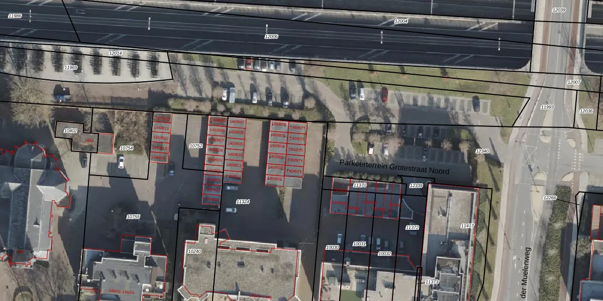 Het perceel waarop Grotestraat 140-B15 staat heeft een oppervlakte van 2400 m². Dit is een zeer groot perceel. De perceeloppervlakte wordt geregistreerd door het Kadaster. Gedetailleerde informatie over de maten van dit perceel kunt u vinden in het rapport Kadastrale kaart met maatvoering van Grotestraat 140-B15.