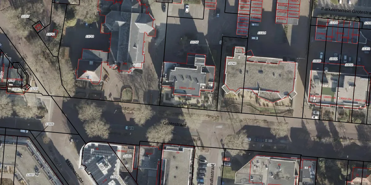 Grotestraat 146-01 is gelegen op kadastraal perceel HLD01C10755. Deze kadastrale aanduiding is uniek en wordt gebruikt door het Kadaster om eigendomsrechten en andere zakelijke rechten vast te leggen. Het perceel maakt onderdeel uit van de kadastrale gemeente Hellendoorn.