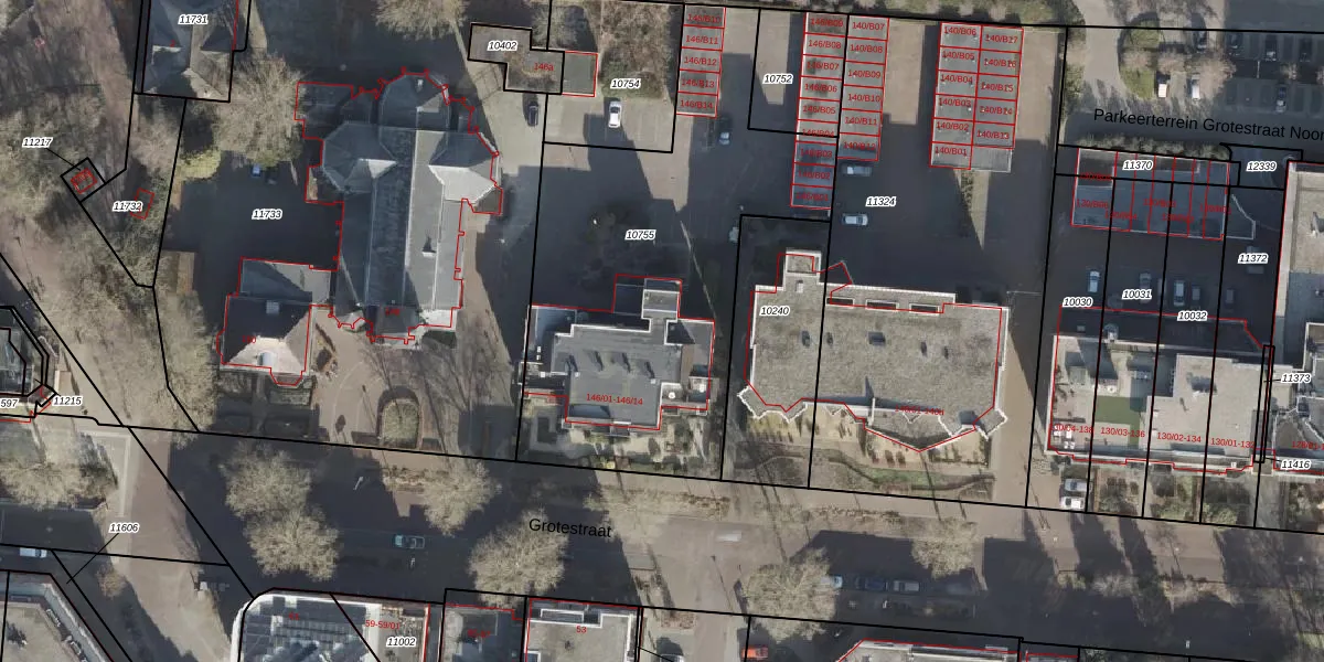 Het perceel waarop Grotestraat 146-12 staat heeft een oppervlakte van 1935 m². Dit is een zeer groot perceel. De perceeloppervlakte wordt geregistreerd door het Kadaster. Gedetailleerde informatie over de maten van dit perceel kunt u vinden in het rapport Kadastrale kaart met maatvoering van Grotestraat 146-12.