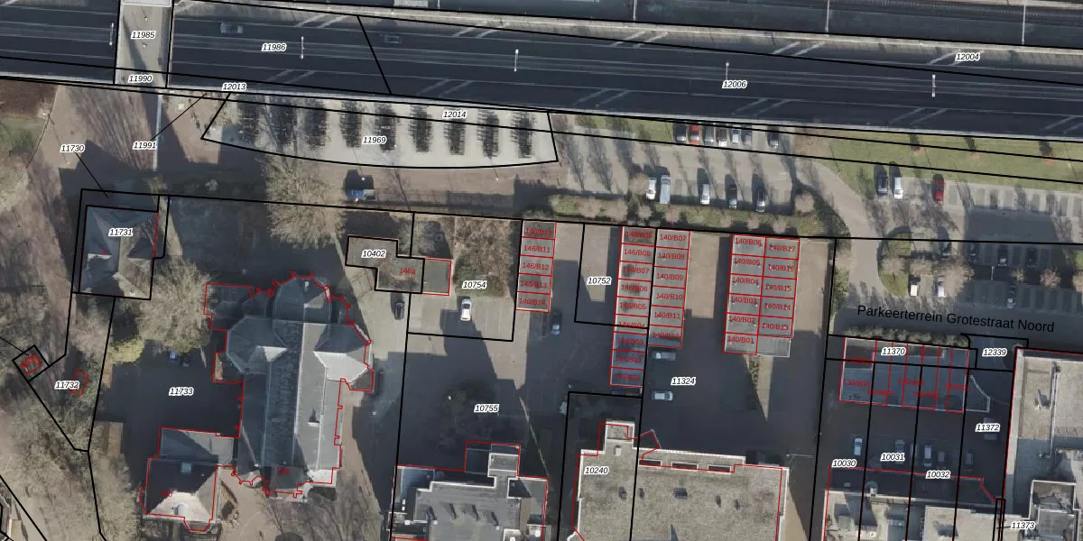 Het perceel waarop Grotestraat 146-B12 staat heeft een oppervlakte van 1935 m². Dit is een zeer groot perceel. De perceeloppervlakte wordt geregistreerd door het Kadaster. Gedetailleerde informatie over de maten van dit perceel kunt u vinden in het rapport Kadastrale kaart met maatvoering van Grotestraat 146-B12.