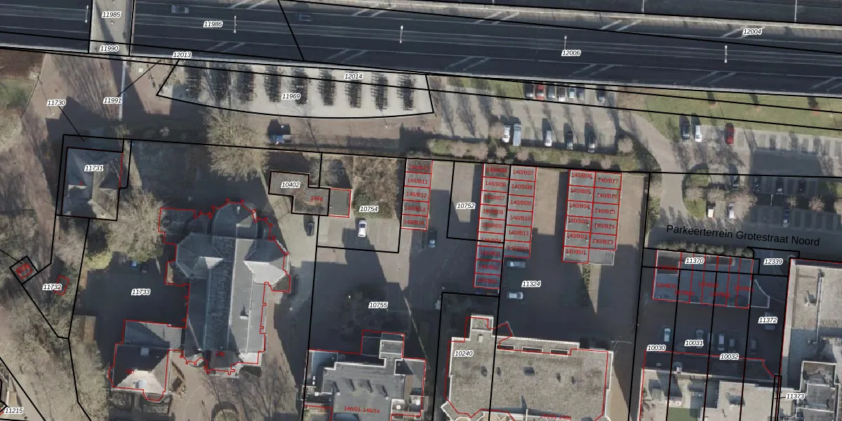 Het perceel waarop Grotestraat 146-B13 staat heeft een oppervlakte van 1935 m². Dit is een zeer groot perceel. De perceeloppervlakte wordt geregistreerd door het Kadaster. Gedetailleerde informatie over de maten van dit perceel kunt u vinden in het rapport Kadastrale kaart met maatvoering van Grotestraat 146-B13.