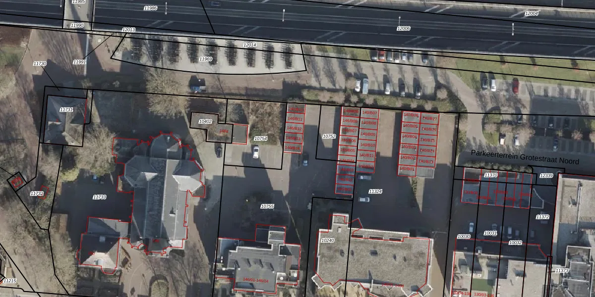 Het perceel waarop Grotestraat 146-B14 staat heeft een oppervlakte van 1935 m². Dit is een zeer groot perceel. De perceeloppervlakte wordt geregistreerd door het Kadaster. Gedetailleerde informatie over de maten van dit perceel kunt u vinden in het rapport Kadastrale kaart met maatvoering van Grotestraat 146-B14.