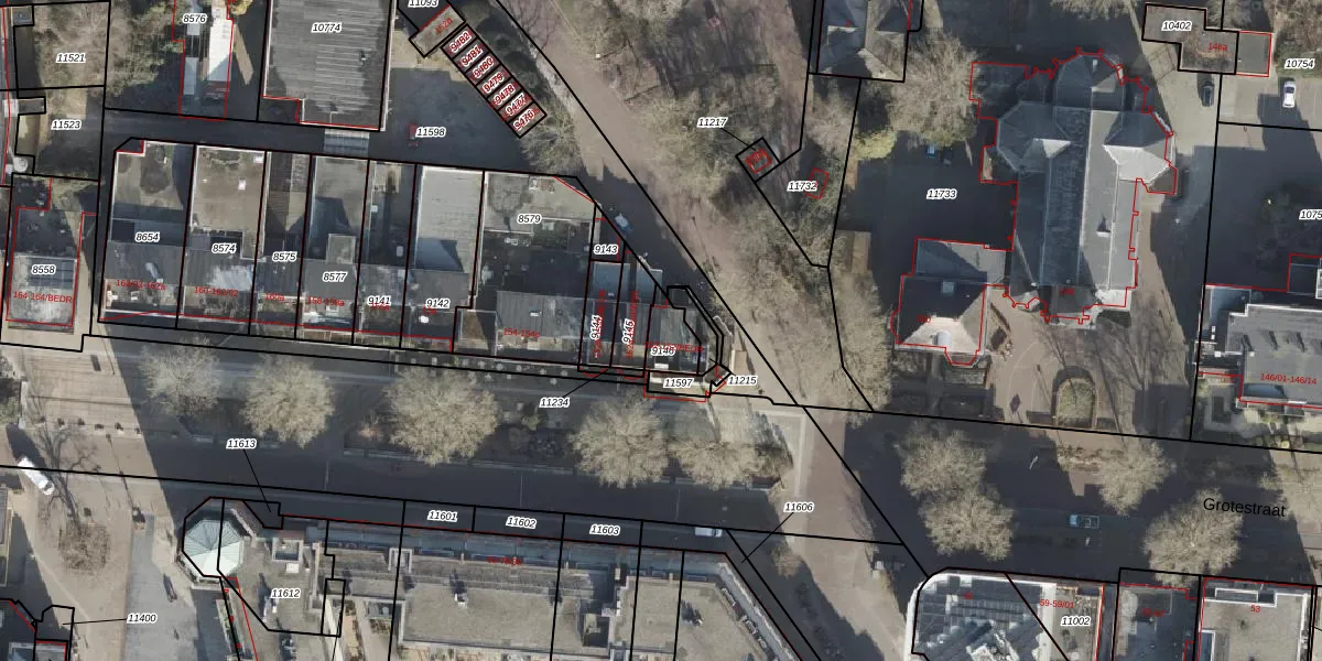 Het perceel waarop Grotestraat 152-BEDR staat heeft een oppervlakte van 79 m². Dit is een klein perceel. De perceeloppervlakte wordt geregistreerd door het Kadaster. Gedetailleerde informatie over de maten van dit perceel kunt u vinden in het rapport Kadastrale kaart met maatvoering van Grotestraat 152-BEDR.
