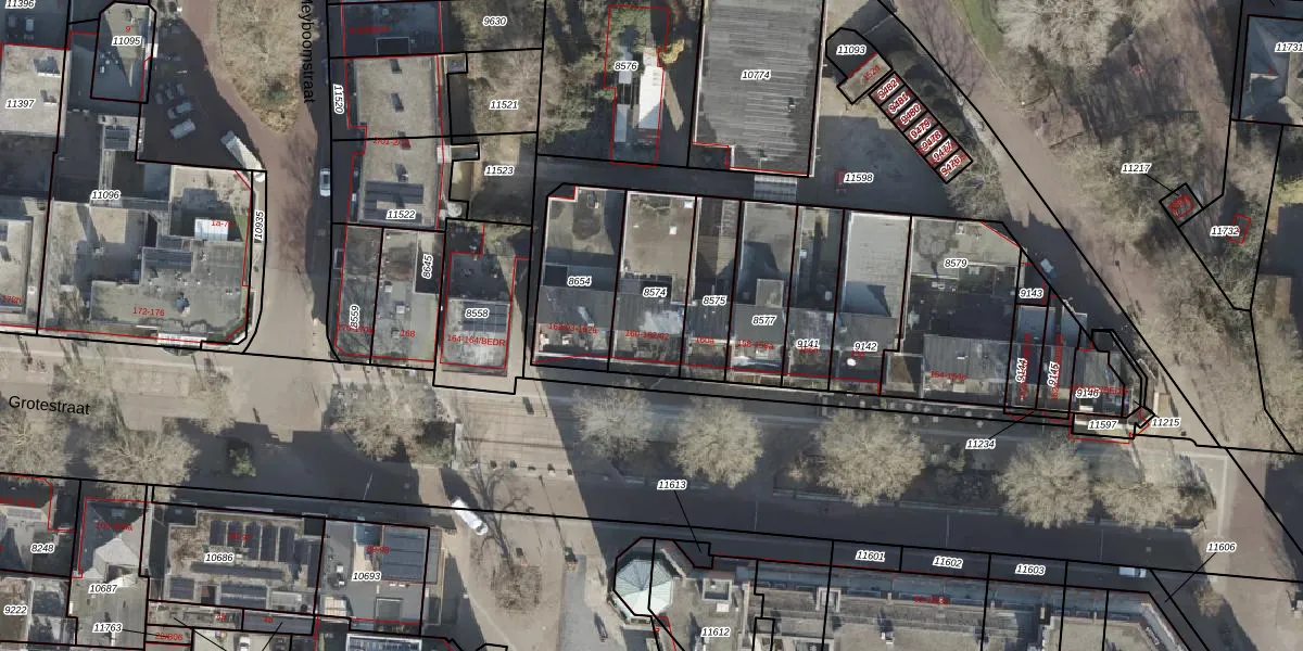 Het perceel waarop Grotestraat 162-01 staat heeft een oppervlakte van 308 m². Dit is een groot perceel. De perceeloppervlakte wordt geregistreerd door het Kadaster. Gedetailleerde informatie over de maten van dit perceel kunt u vinden in het rapport Kadastrale kaart met maatvoering van Grotestraat 162-01.
