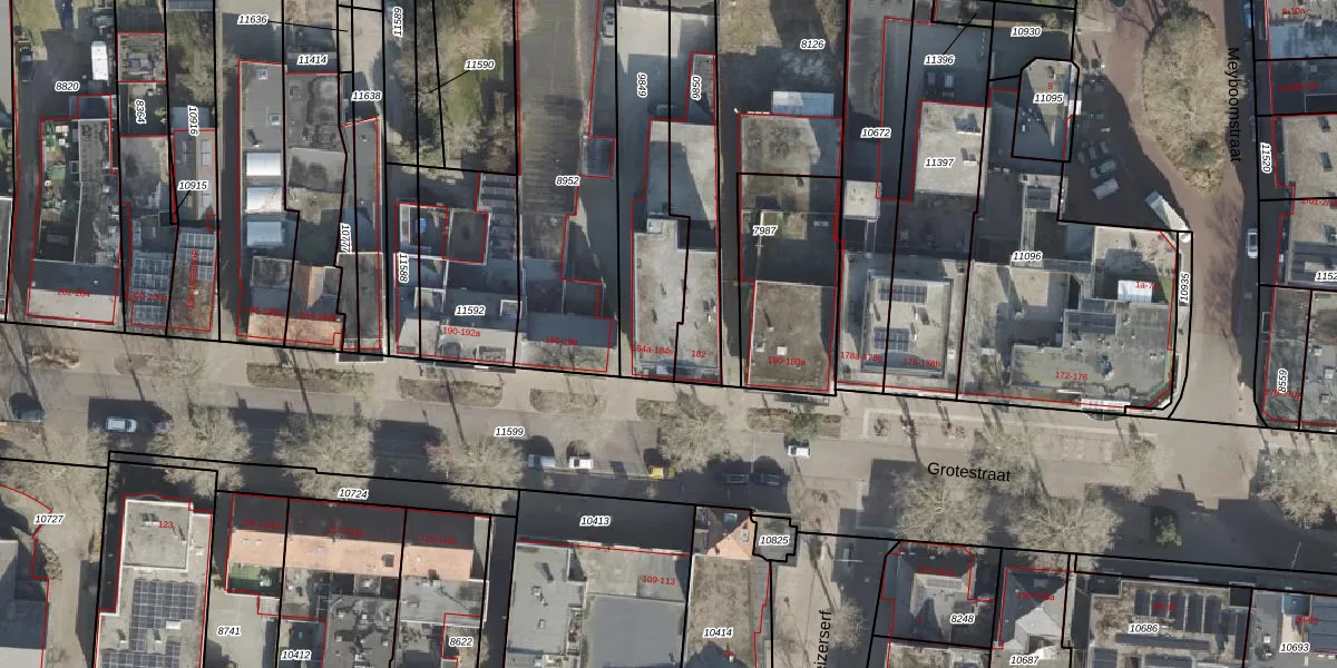 Het perceel waarop Grotestraat 184-b staat heeft een oppervlakte van 527 m². Dit is een groot perceel. De perceeloppervlakte wordt geregistreerd door het Kadaster. Gedetailleerde informatie over de maten van dit perceel kunt u vinden in het rapport Kadastrale kaart met maatvoering van Grotestraat 184-b.