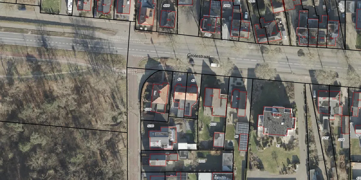 Het perceel waarop Grotestraat 213 staat heeft een oppervlakte van 207 m². Dit is een middelgroot perceel. De perceeloppervlakte wordt geregistreerd door het Kadaster. Gedetailleerde informatie over de maten van dit perceel kunt u vinden in het rapport Kadastrale kaart met maatvoering van Grotestraat 213.