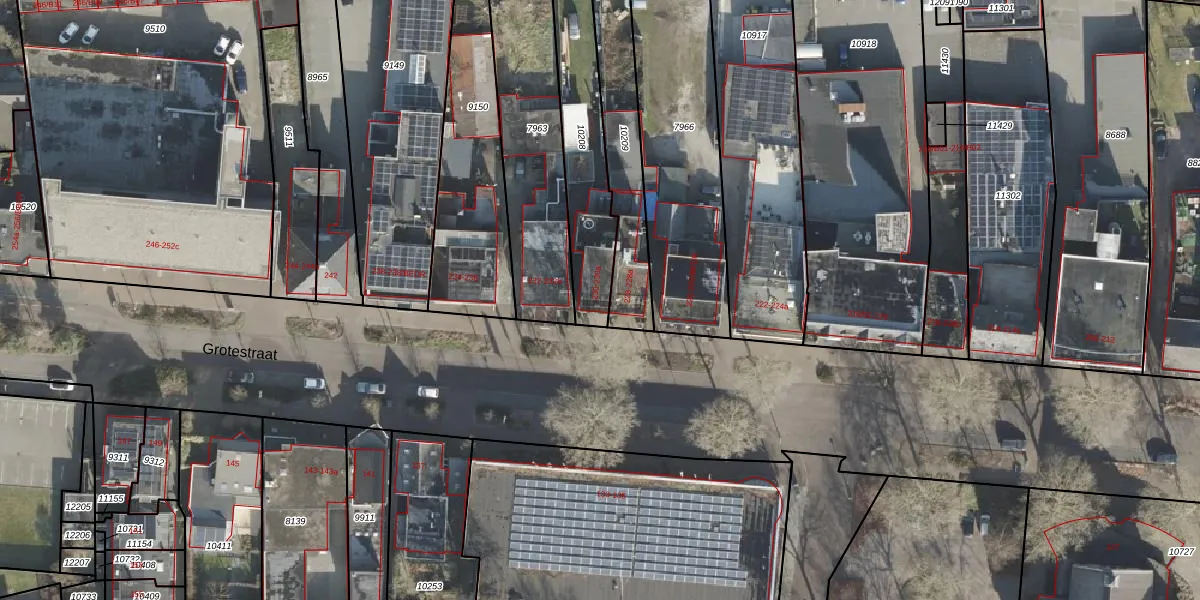 Het perceel waarop Grotestraat 230 staat heeft een oppervlakte van 405 m². Dit is een groot perceel. De perceeloppervlakte wordt geregistreerd door het Kadaster. Gedetailleerde informatie over de maten van dit perceel kunt u vinden in het rapport Kadastrale kaart met maatvoering van Grotestraat 230.
