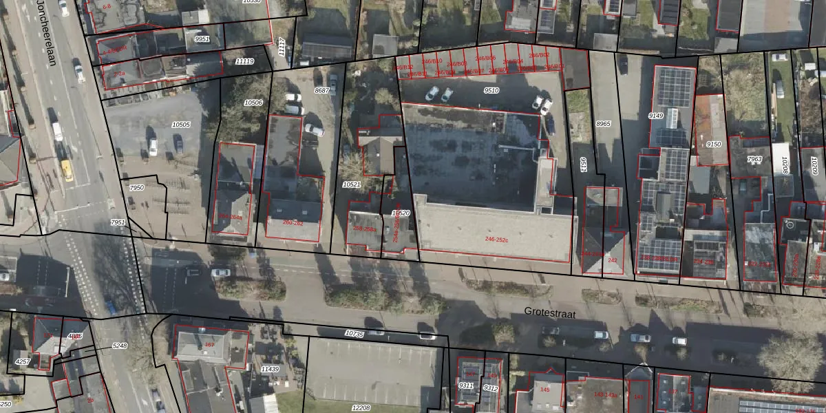 Het perceel waarop Grotestraat 254-c staat heeft een oppervlakte van 185 m². Dit is een middelgroot perceel. De perceeloppervlakte wordt geregistreerd door het Kadaster. Gedetailleerde informatie over de maten van dit perceel kunt u vinden in het rapport Kadastrale kaart met maatvoering van Grotestraat 254-c.