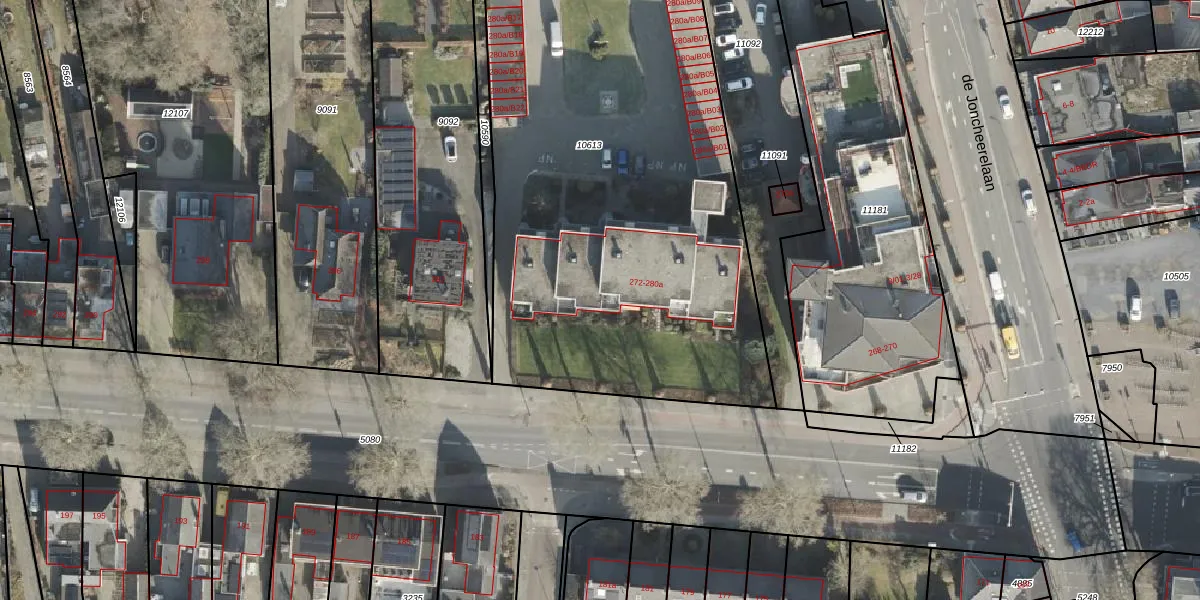 Het perceel waarop Grotestraat 278-b staat heeft een oppervlakte van 3110 m². Dit is een zeer groot perceel. De perceeloppervlakte wordt geregistreerd door het Kadaster. Gedetailleerde informatie over de maten van dit perceel kunt u vinden in het rapport Kadastrale kaart met maatvoering van Grotestraat 278-b.