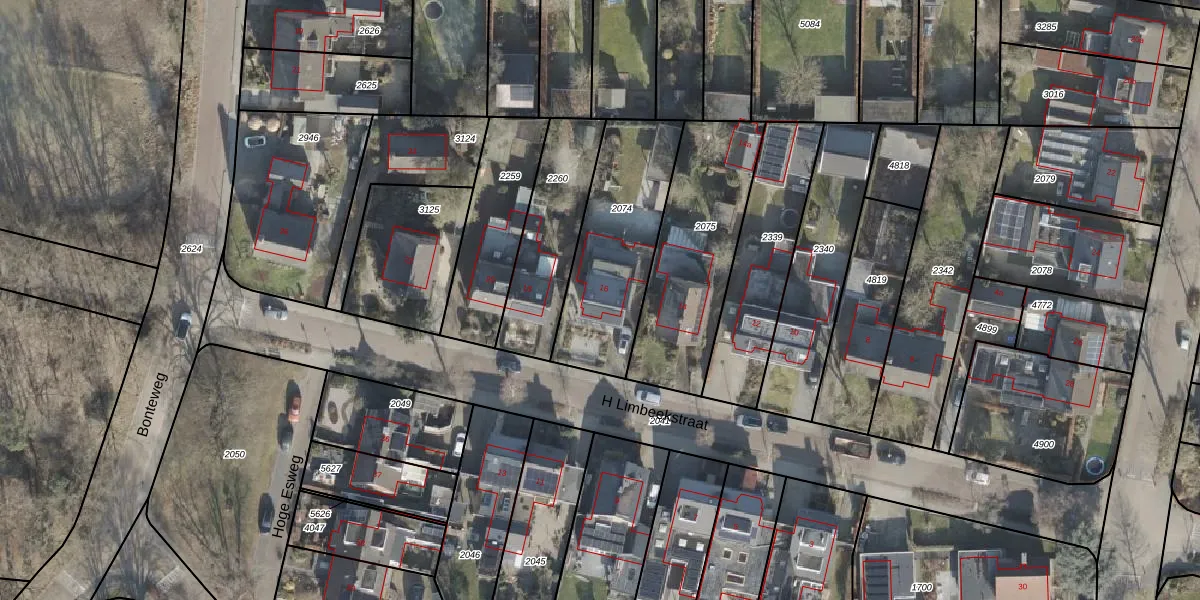 Het perceel waarop H Limbeekstraat 16 staat heeft een oppervlakte van 559 m². Dit is een groot perceel. De perceeloppervlakte wordt geregistreerd door het Kadaster. Gedetailleerde informatie over de maten van dit perceel kunt u vinden in het rapport Kadastrale kaart met maatvoering van H Limbeekstraat 16.