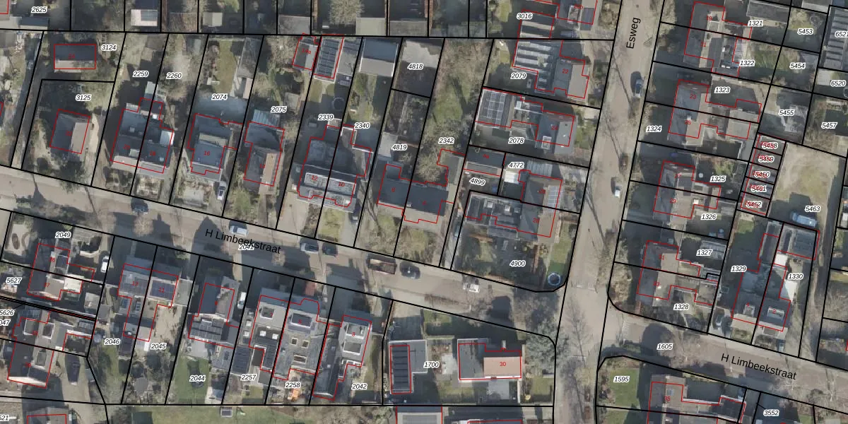 Het perceel waarop H Limbeekstraat 6 staat heeft een oppervlakte van 613 m². Dit is een groot perceel. De perceeloppervlakte wordt geregistreerd door het Kadaster. Gedetailleerde informatie over de maten van dit perceel kunt u vinden in het rapport Kadastrale kaart met maatvoering van H Limbeekstraat 6.