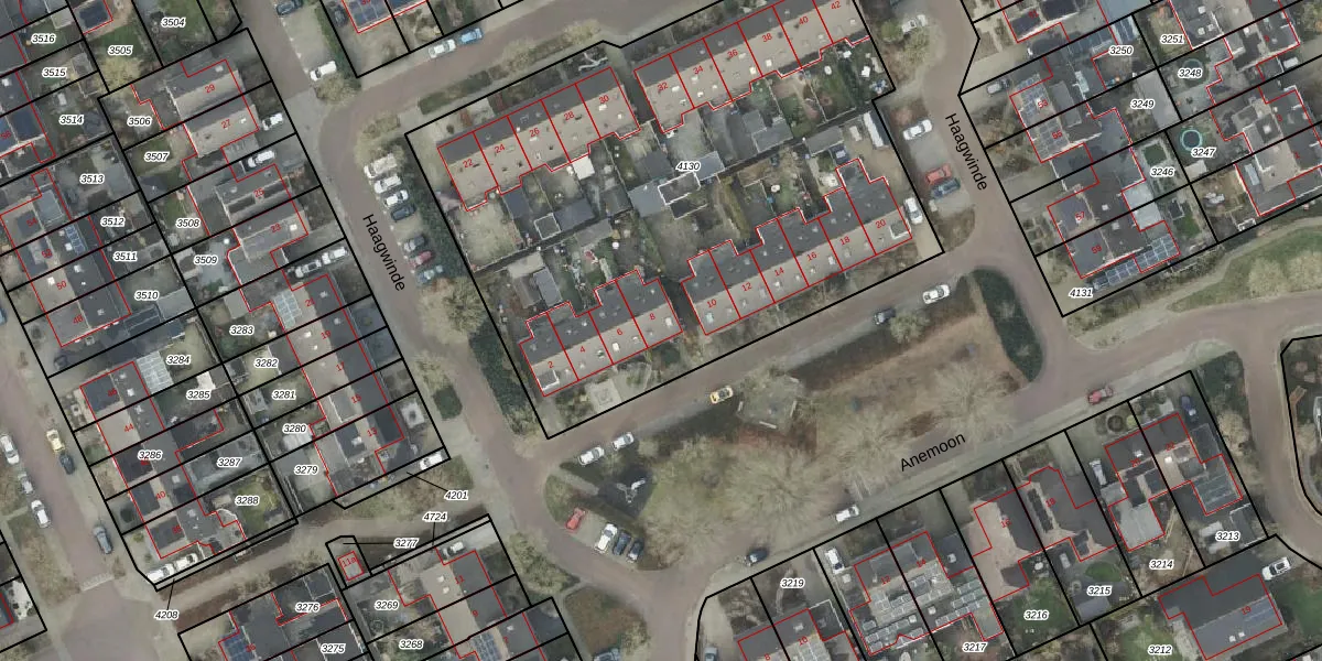 Het perceel waarop Haagwinde 8 staat heeft een oppervlakte van 3391 m². Dit is een zeer groot perceel. De perceeloppervlakte wordt geregistreerd door het Kadaster. Gedetailleerde informatie over de maten van dit perceel kunt u vinden in het rapport Kadastrale kaart met maatvoering van Haagwinde 8.
