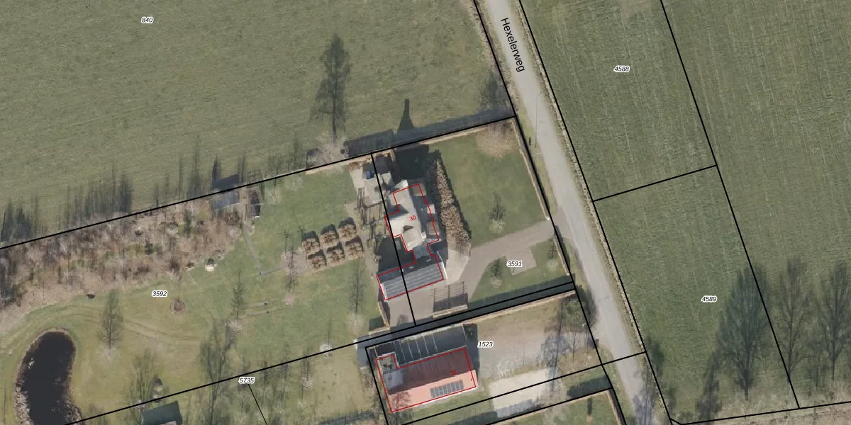 Hexelerweg 30 is gelegen op kadastraal perceel HLD01L3591. Deze kadastrale aanduiding is uniek en wordt gebruikt door het Kadaster om eigendomsrechten en andere zakelijke rechten vast te leggen. Het perceel maakt onderdeel uit van de kadastrale gemeente Hellendoorn.