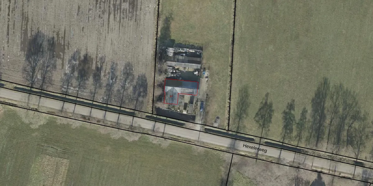 Het perceel waarop Hexelerweg 57 staat heeft een oppervlakte van 8150 m². Dit is een zeer groot perceel. De perceeloppervlakte wordt geregistreerd door het Kadaster. Gedetailleerde informatie over de maten van dit perceel kunt u vinden in het rapport Kadastrale kaart met maatvoering van Hexelerweg 57.