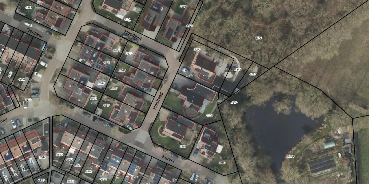 Het perceel waarop Hoefblad 7 staat heeft een oppervlakte van 568 m². Dit is een groot perceel. De perceeloppervlakte wordt geregistreerd door het Kadaster. Gedetailleerde informatie over de maten van dit perceel kunt u vinden in het rapport Kadastrale kaart met maatvoering van Hoefblad 7.