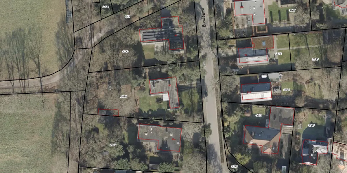 Het perceel waarop Holterweg 98 staat heeft een oppervlakte van 1996 m². Dit is een zeer groot perceel. De perceeloppervlakte wordt geregistreerd door het Kadaster. Gedetailleerde informatie over de maten van dit perceel kunt u vinden in het rapport Kadastrale kaart met maatvoering van Holterweg 98.