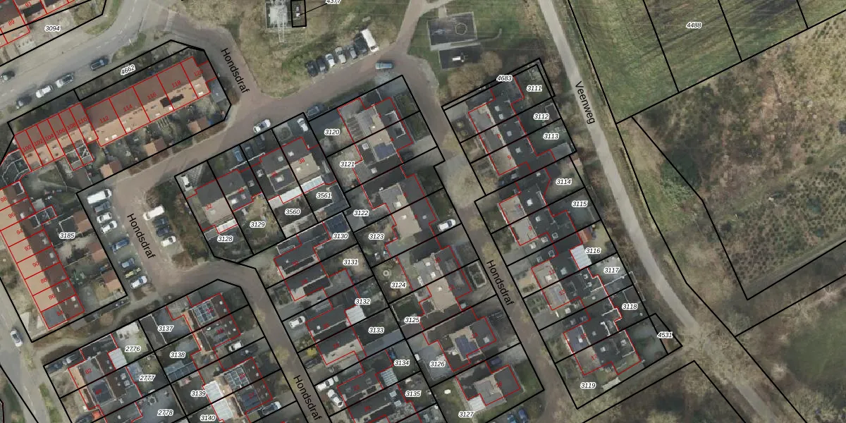 Gebruik de zoekbalk of klik op een perceel voor informatie over de adressen binnen dit perceel.