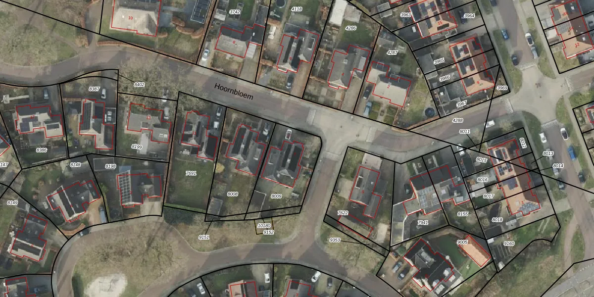 Het perceel waarop Hoornbloem 7 staat heeft een oppervlakte van 474 m². Dit is een groot perceel. De perceeloppervlakte wordt geregistreerd door het Kadaster. Gedetailleerde informatie over de maten van dit perceel kunt u vinden in het rapport Kadastrale kaart met maatvoering van Hoornbloem 7.